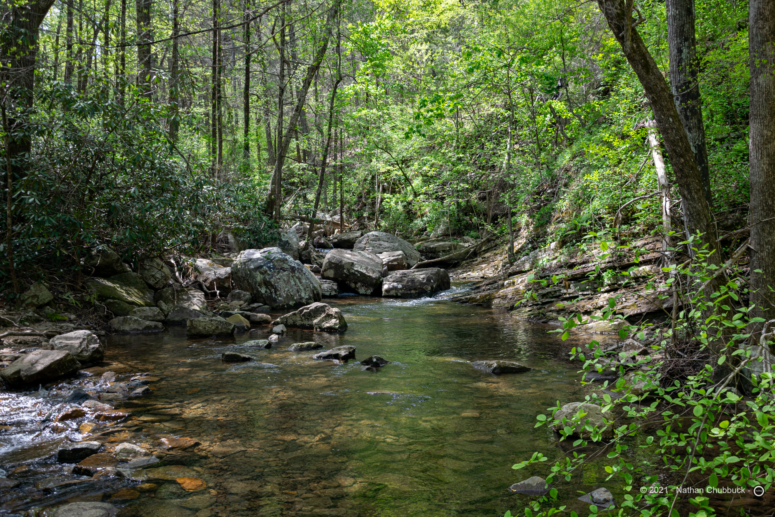 Lower Rainbow Falls – Cherokee National Forest These pictures are from Lower Rainbow Falls and Rock Creek on the path to get there. Cherokee National ForestBenton, Tennessee April – 2021 Back to Top More Albums